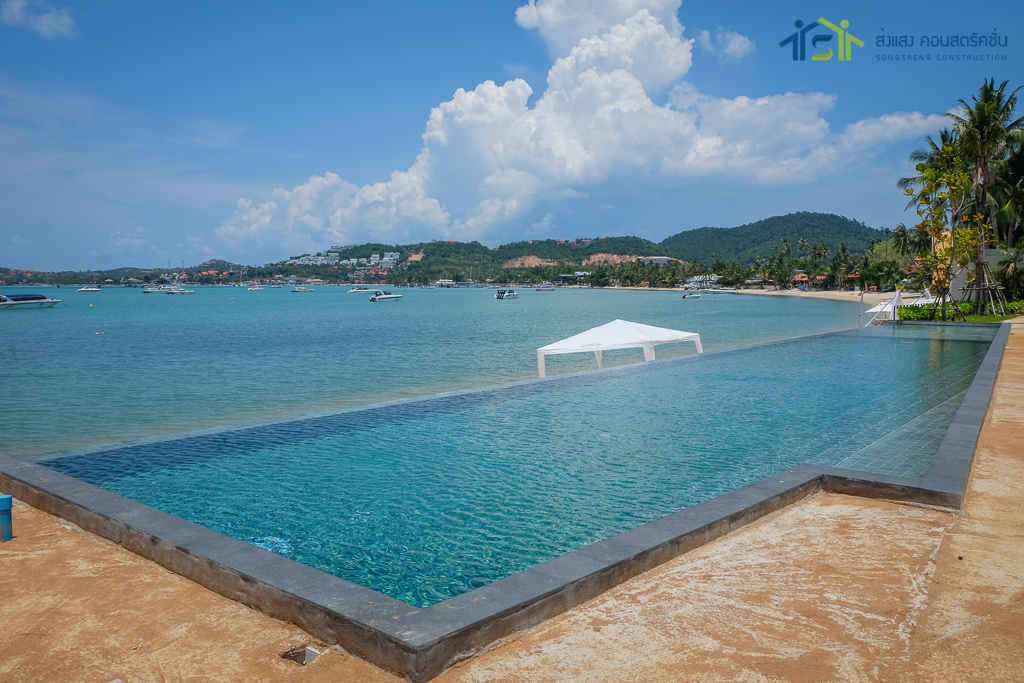 สระว่ายน้ำและกำแพงกันดิน Prana Samui Resort